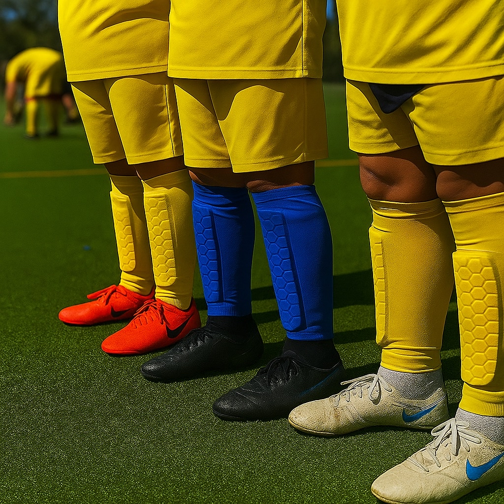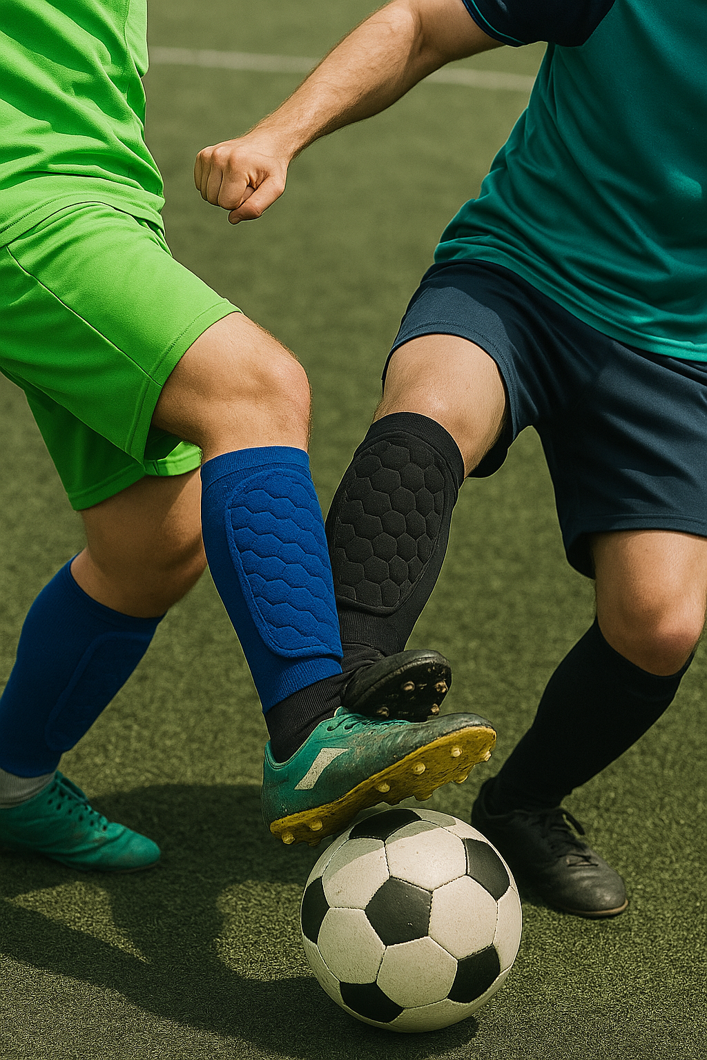 Tillverkade av funktionsmaterial och töjbart skum erbjuder våra benskydd optimalt skydd på planen. Den tåliga materialkombinationen ger stabilitet och den förstärkta strukturen absorberar stötar effektivt. De sitter säkert på benet och rör sig inte – de skyddar dig utan att begränsa rörligheten, vilket gör dem till det perfekta valet för idrottare som vill fokusera helt på sitt spel.